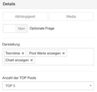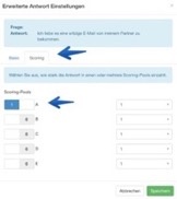 Sobald das Scoring in einer Umfrage aktiviert und Antwortpools definiert wurden, können Antworten in die Pools einzahlen. Dies ist über die erweiterten Antworteinstellungen bei jeder Antwort in der Umfrage verfügbar.