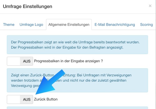 Der Zurück-Button lässt sich über die Umfrage-Einstellungen aktivieren.