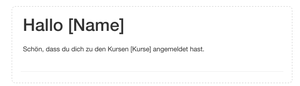 Die Informationen zu den Befragten können auch zur Anzeige innerhalb der Umfrage genutzt werden. Hierfür werden die entsprechenden Attribute in eckige Klammern eingeschlossen (z.B. [Name]):