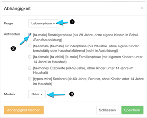 Auch auf externe Informationen über die Befragten können Abhängigkeiten definiert werden (siehe Zugangscodes und Panelbefragungen).