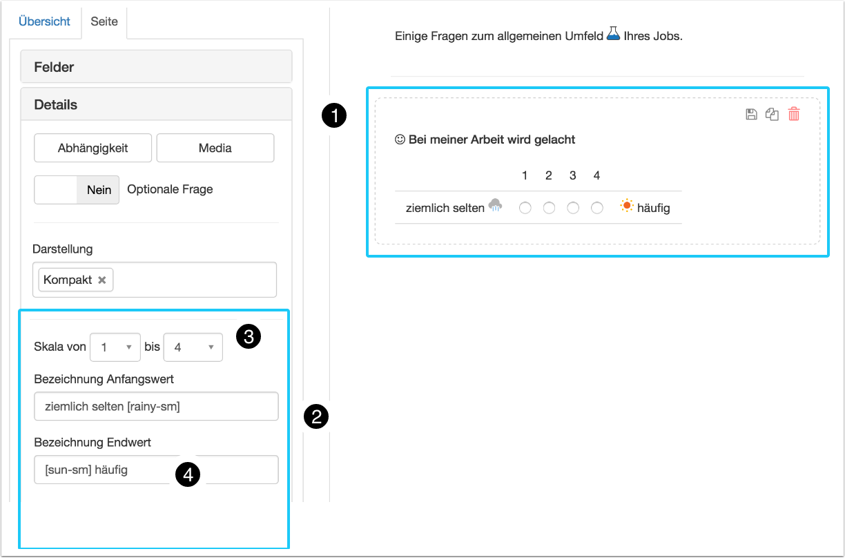 | 3 | Optionale Frage | Hier wird festgelegt, ob diese Frage beantwortet werden muss oder nicht. |