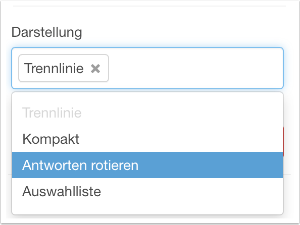 | 4 | Darstellung | Eine Sammlung von Einstellungen, die die Darstellung der Frage beeinflussen können: